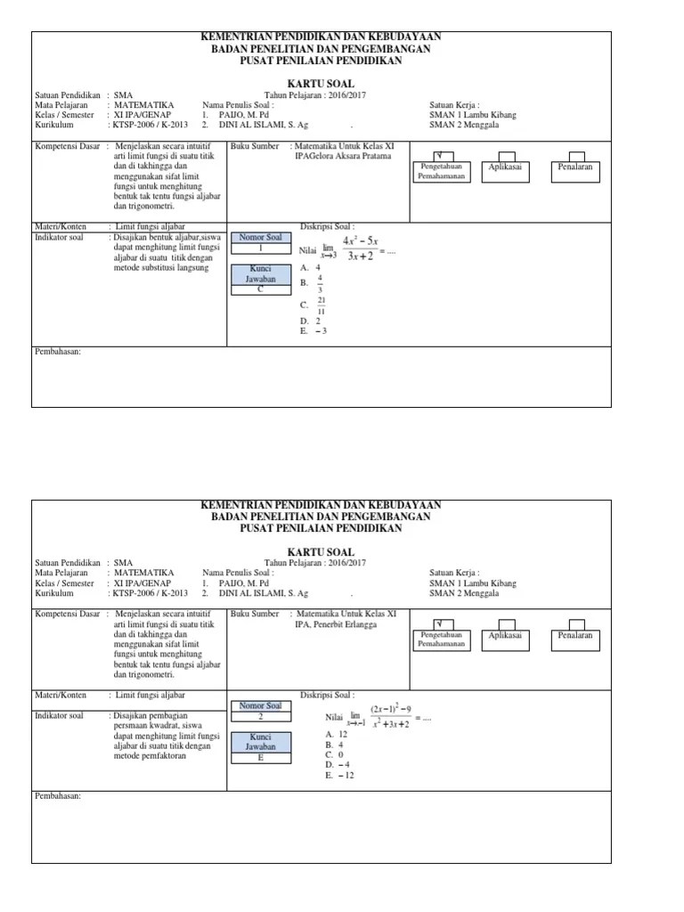 Contoh file soal uts lengkap kelas 1 6 sdmi semua mata pelajaran 20162017 berikut ini adalah kumpulan dari berbagi sumber tentang contoh soal microsoft word pilihan ganda beserta jawabannya. soal dan pembahasan limit fungsi aljabar dan trigonometri. Contoh soal dan pembahasan limit kelas 11, fungsi trigonometri kelas 12 pdf, doc, limit sepihak, 100 soal pilihan ganda limit fungsi aljabar, pdf, contoh soal un limit fungsi aljabar dan pembahasannya, contoh soal limit mencari nilai a dan b, fungsi. Contoh soal bahasa indonesia kelas 11 semester 1. soal pilihan ganda mtk tentang limit dan turunan kelas 11.