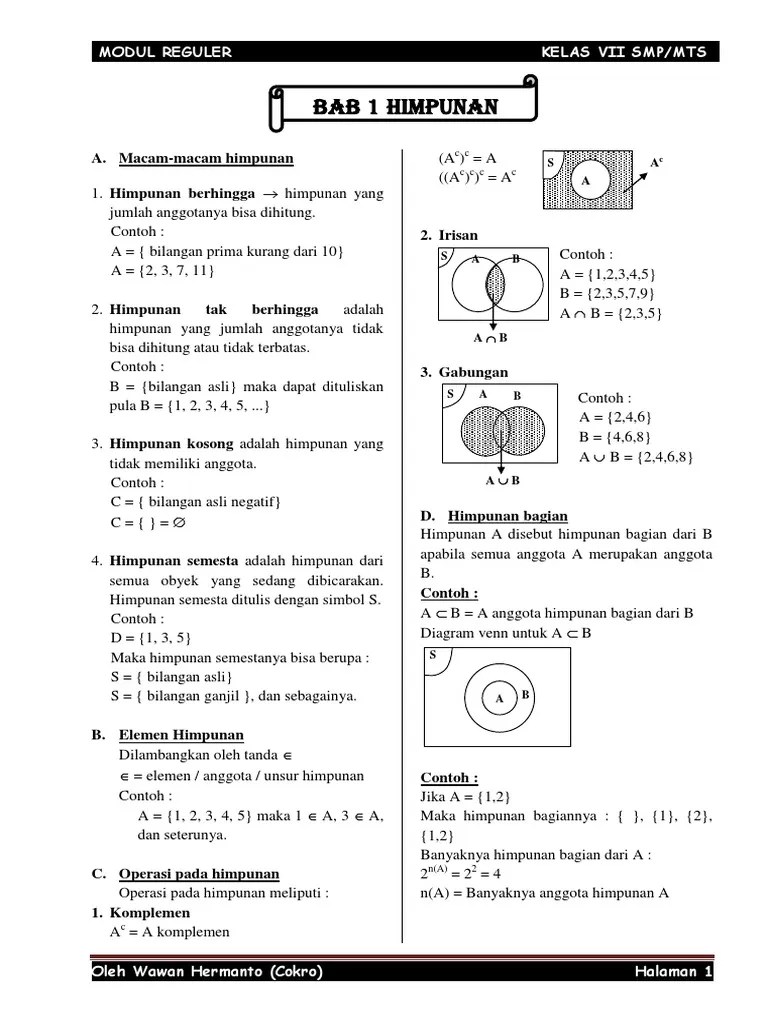 Soal ulangan harian matematika kelas 7 smp semester 1 20192020 bab himpunan beserta . Soal dilengkapi kunci jawaban dan pembahasan mendetail. Cara cepat menjawab soal himpuan diagram venn. Soal pilihan ganda dan soal essay matematika kelas 7 smp, bab himpunan,. Rangkuman bab himpunan kelas 7 smp.